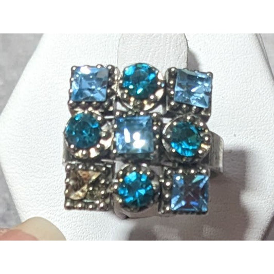 Vintage Blue And Silver Tone Signed Adjustable Statement Ring Size 7 1/2