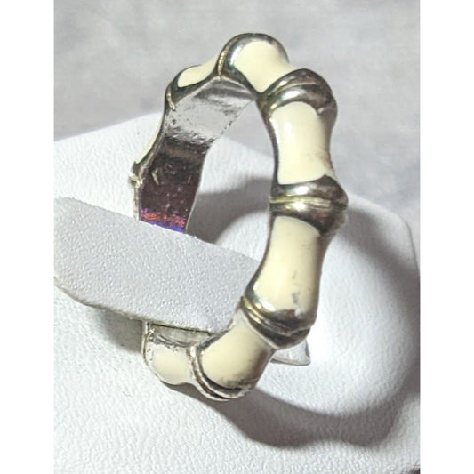 Vintage Cream And Silver Tone Bamboo Style Fashion Ring Size 7 3/4