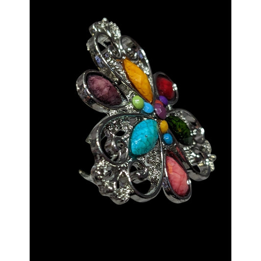 Rainbow Fairycore Floral Gemmed Statement Ring Adjustable Size 6 1/2