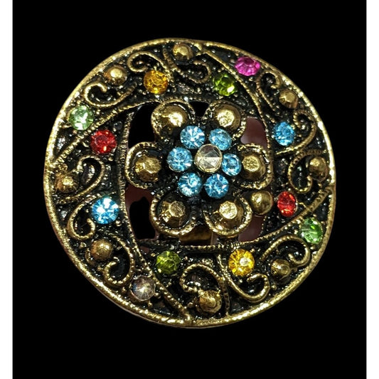 Floral Glam Shield Ring Gold Tone With Rainbow Rhinestones
