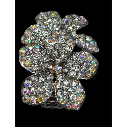 Fairycore Aurora Borealis Floral Double Finger Silver Tone Stretch Ring