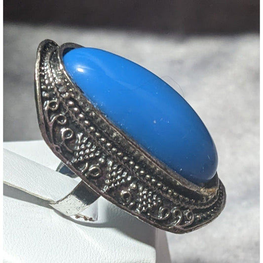 Bohemian Large Blue Stone Silver Tone Adjustable Ring Size 6 1/2