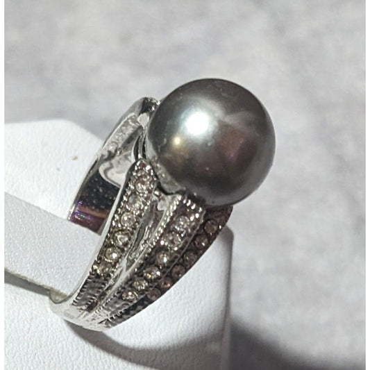 Elegant Glam 18K Gold Filled Silver Tone Pearl And Gem Ring Size 7