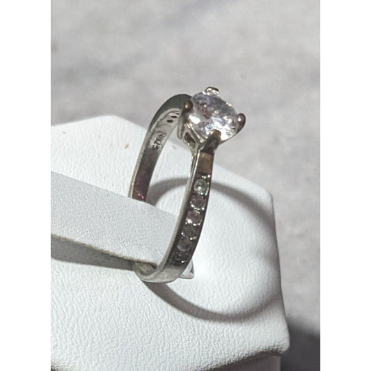 Classic Sterling Silver Gemmed Engagement Ring Size 7 1/2