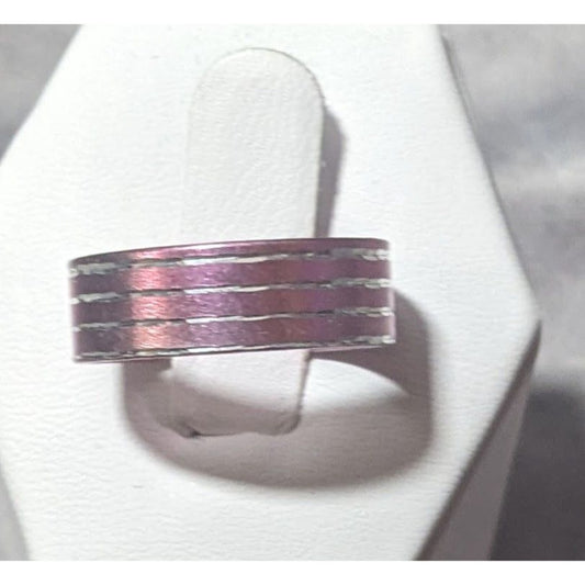 Pink Metal Silver Stripe Etched Fashion Ring Size 8 3/4