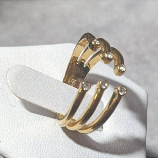 Baublebar Glam Gold Tone Tripe Layer Cage Ring With Clear Stones Size 7