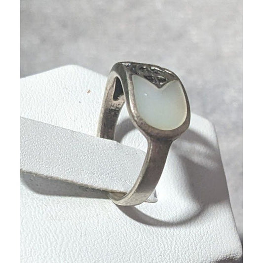 Vintage Fairy Sterling Silver Mother Of Pearl Ring Size 4 3/4