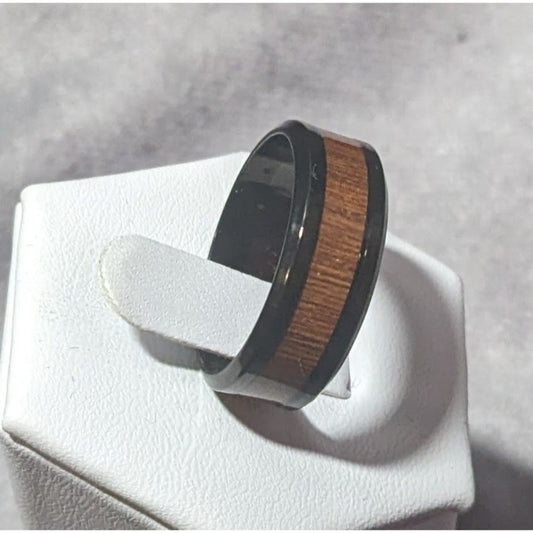 Classic Black Tungsten Carbide Ring With Wood Inlay Size 9 1/2