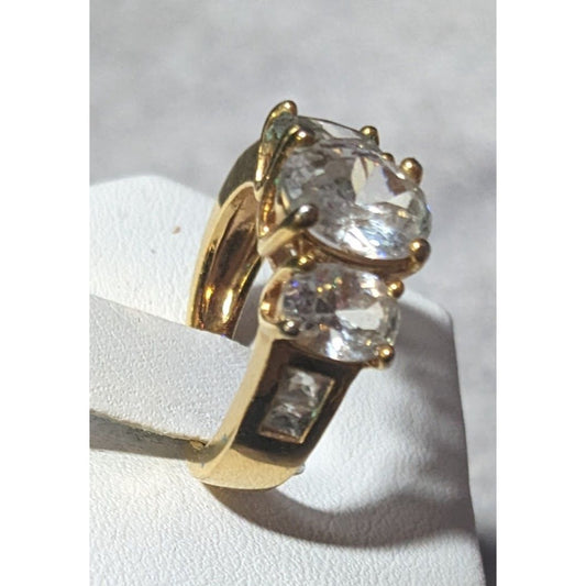 Glamorous Bright Gold Tone Large Three Stone Cubic Zirconia Wedding Ring Size 4 3/4