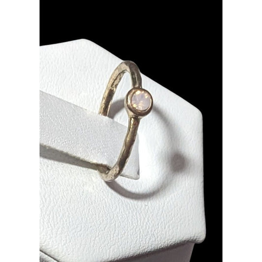 Minimalist Gold Tone Textured Ring With Tiny Pastel Pink Stone Size 4