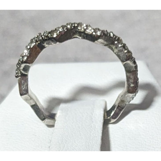 Elegant Glam Zigzag Rhinestone Silver Tone Ring Size 6 3/4