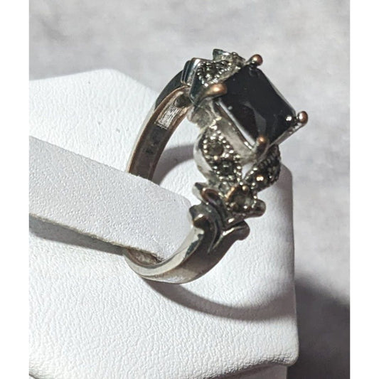 Gothic Art Deco Black Gemmed And Marcasite Ring Size 7 1/4