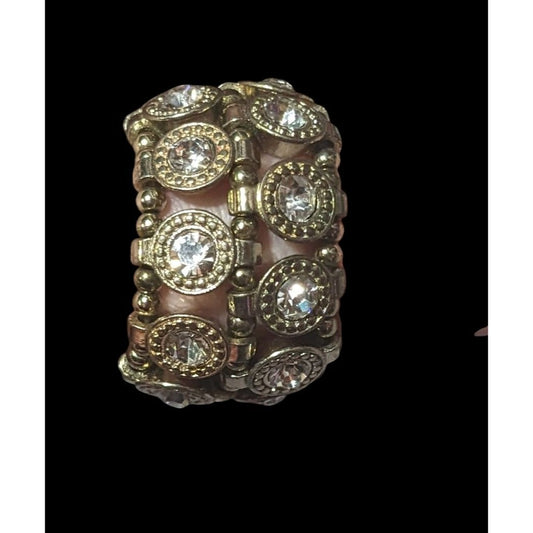 Elegant Glam Triple Crystal Layer Gold Tone Ring Size 5