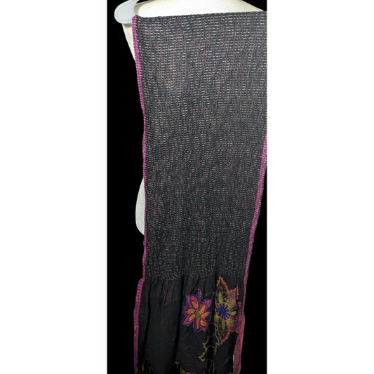 Vintage Bohemian Grey And Pink Floral Embroidered Scarf
