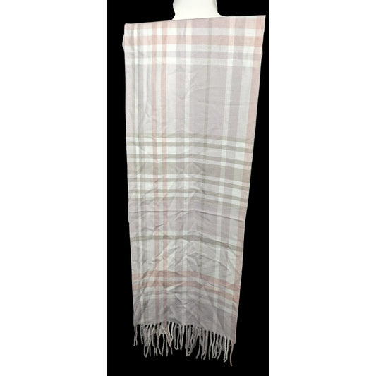 Cashmere Feel Pink And Grey Soft Fringe Scarf