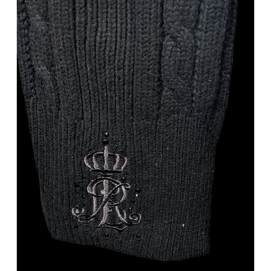 Ralph Lauren Black Cable Knit Embroidered Logo Rhinestone Scarf