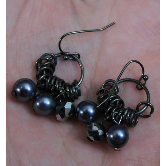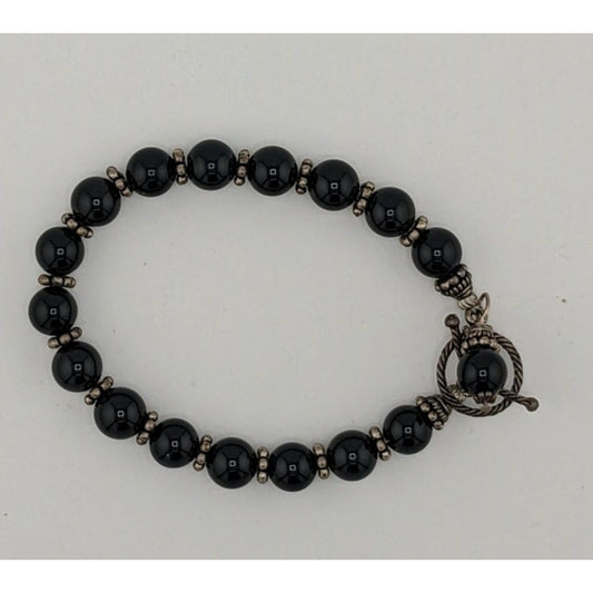 Handmade Gothic Black Stone Beaded Bracelet With Silver Tone Spacers