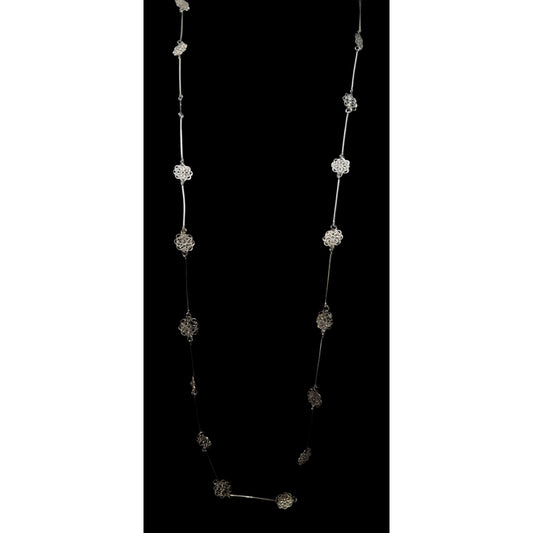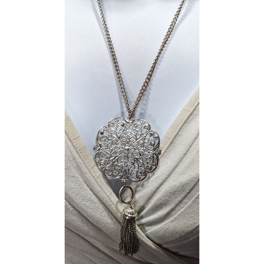 Filigree Silver-Tone Pendant Necklace With Chain And Tassel Accent
