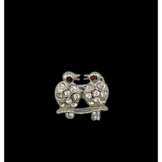 Vintaged Gemmed Bird Brooch Silver Tone With Red Eyes