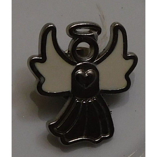 Angel Heart Silver Tone Lapel Pin With White Enamel Accents