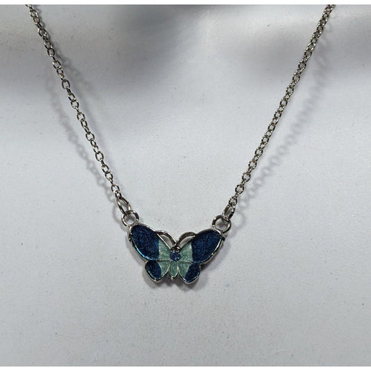 Fairycore Butterfly Pendant Necklace With Blue And Silver Tone Shimmer Enamel
