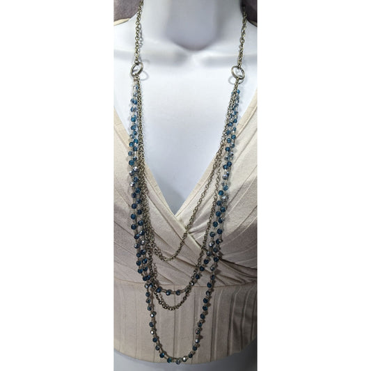 Vintage Blue And Silver Tone Beaded Layered Multi Chain Statement Necklace