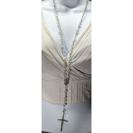 Vintage Crystal Catholic Rosary Beads With Silver Tone Crucifix & Aurora Borealis Crystal Beads