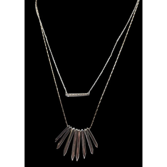 Stella And Dot Layered Silver Spike Pendant Necklace With Rhinestone Accents