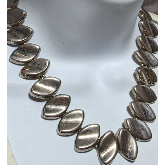 Vintage Modernist Silver Concave Leaf Link Necklace