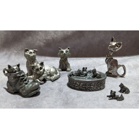 Vintage Miniature Pewter Cat Set (7)