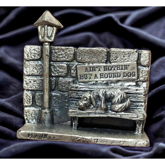 Vintage Pewter Hound Dog On Bench Figure