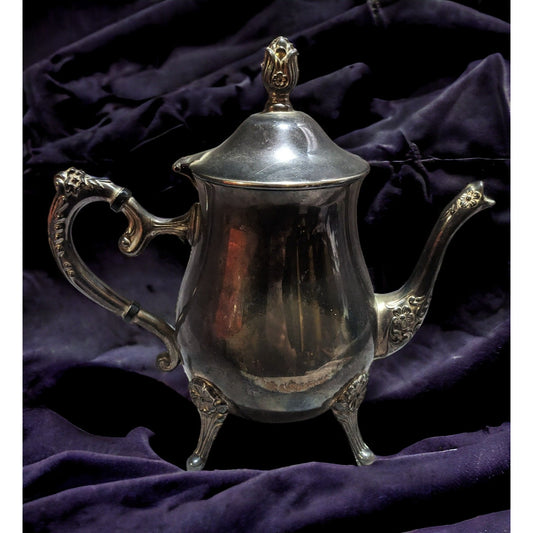 Maxben Vintage Silver Plated Floral Footed Brass Teapot