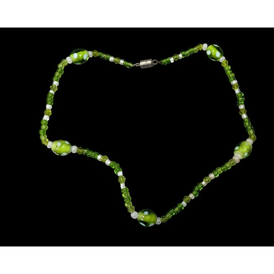 Fairycore Coquette Pink And Green Floral Handmade Glass Coil Necklace
