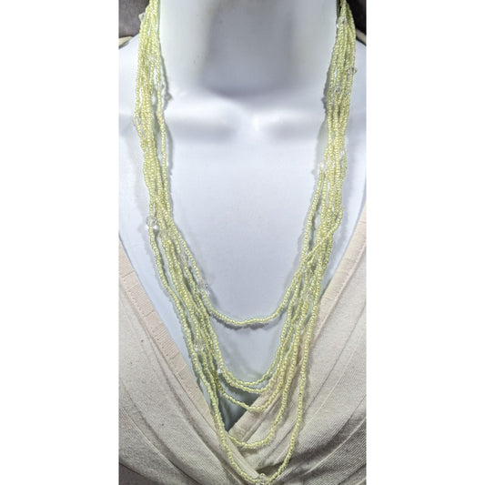 Pastel Yellow Multilayer Glass Beaded Necklace