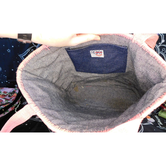 • Vintage Beachy Roxy Woven Straw Tote With Floral Accent