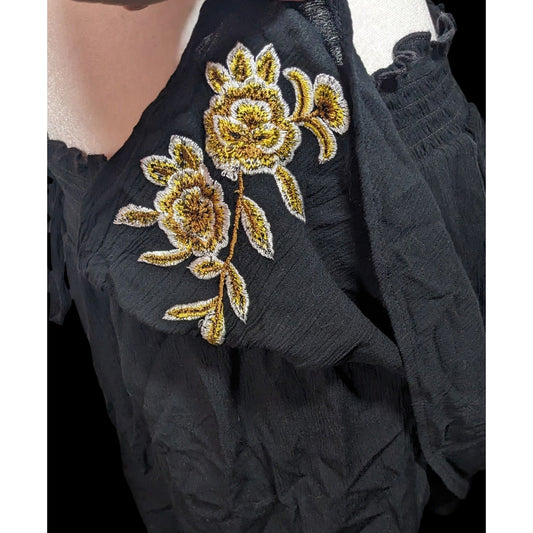 Kendall & Kylie Black Shorts With Gold Floral Embroidery