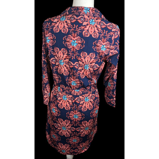 Modaposa Carlotta Belted Blue And Pink Floral Dress