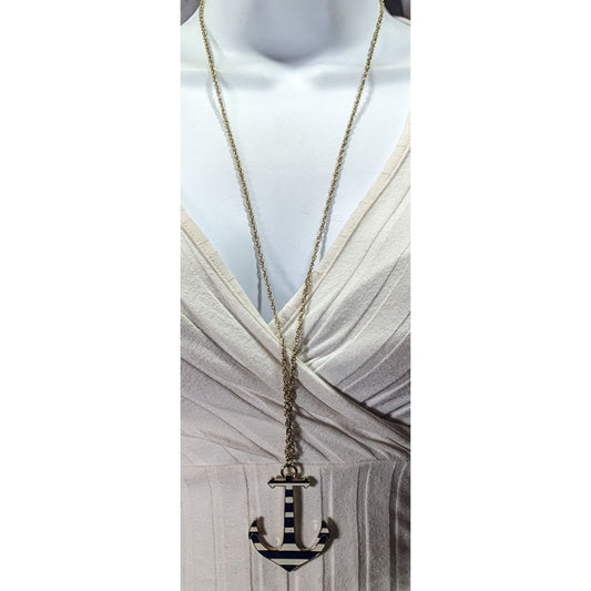 Nautical Enamel Blue And White Striped Anchor Necklace
