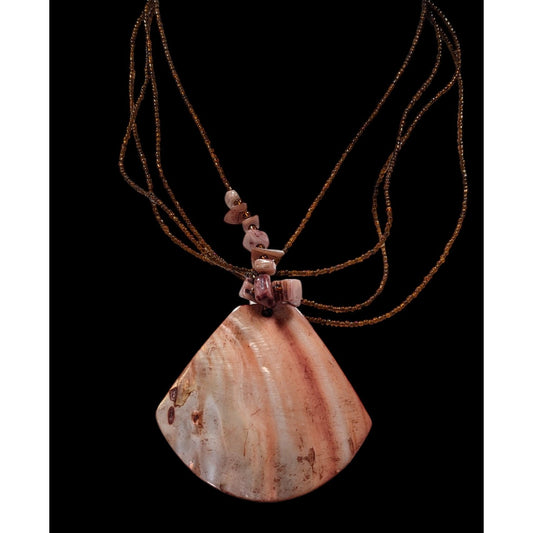 Vintage Mermaidcore Brown Shell And Glass Beaded Pendant Necklace