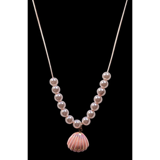 Pink Mermaidcore Iridescent Shell Pendant Beaded Necklace