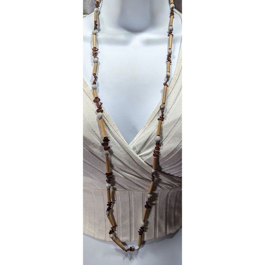 Vintage Beachy Brown And Tan Mottled Shell Beaded Necklace