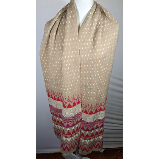 Classic Fair Isle Tan And Pink Heavy Winter Scarf