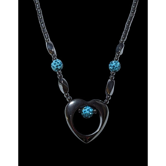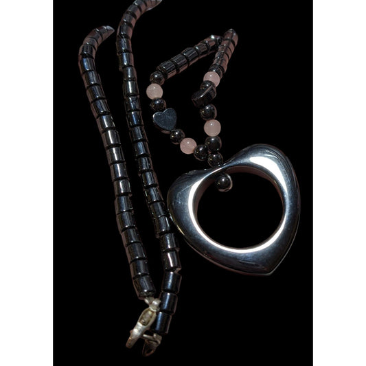 Hematite Open Heart Beaded Pendant Necklace