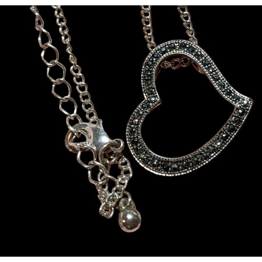 Gothic Marcasite Open Heart Pendant Necklace