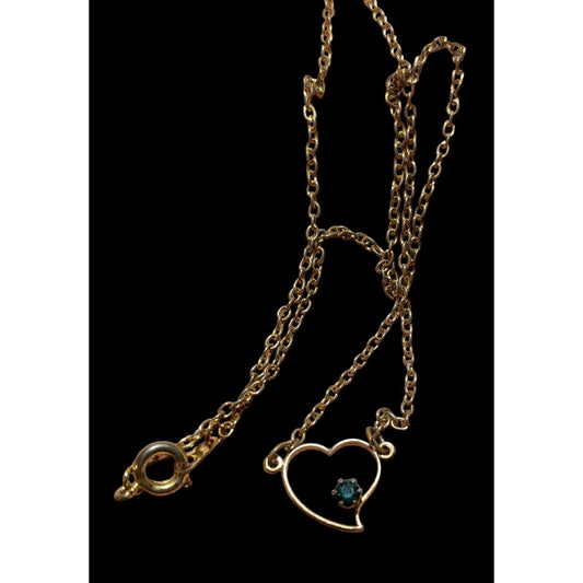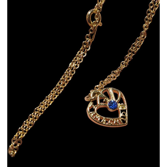 Gold Open Heart Blue Gem Necklace