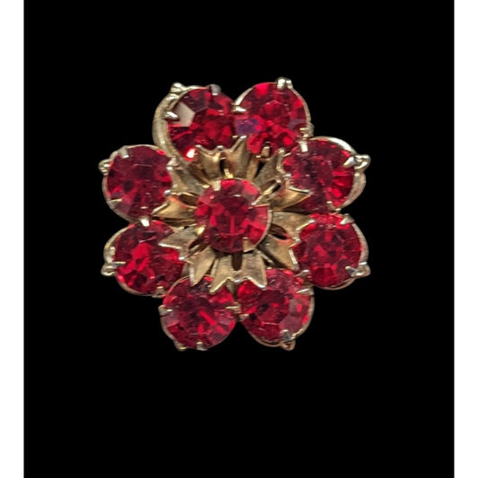 Vintage Vampire Red And Gold Tone Floral Gemmed Brooch