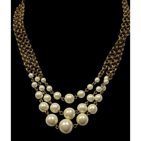 Vintage Glam Avon Cream And Gold Tone Fuax Pearl Layered Chain Necklace