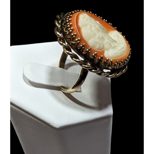 Vintage Cameo Ring Victorian Style Gold Tone Adjustable 7.5