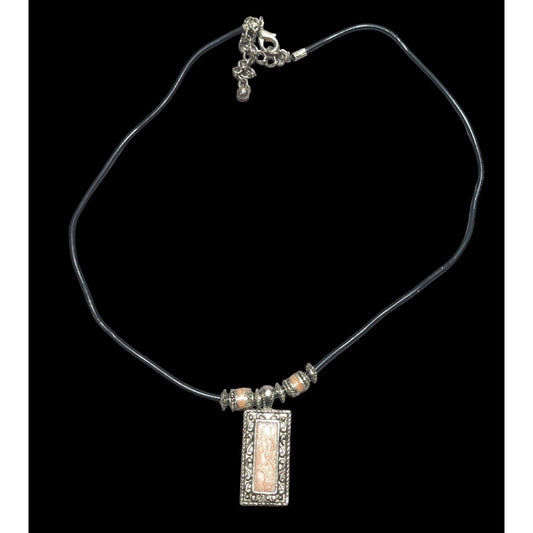 Vintage Boho Pendant Necklace With Pink Enamel