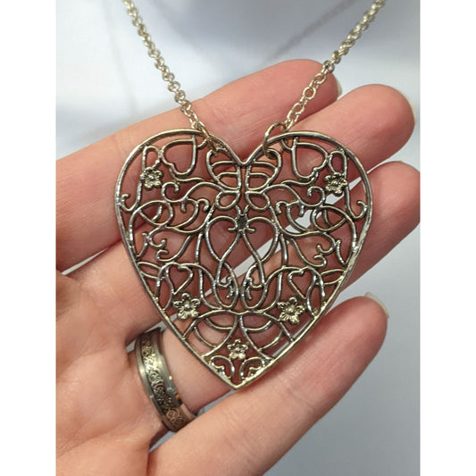 Silver Floral Filigree Heart Pendant Necklace